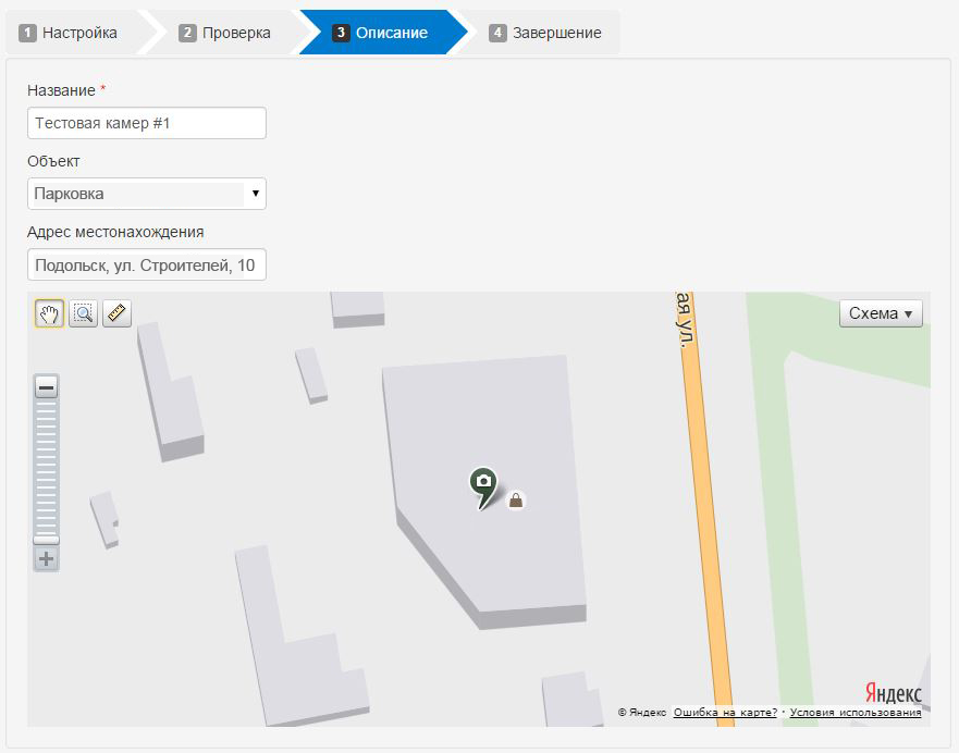 Новый объект создан. Теперь к нему нужно добавить камеры, которые подключены по указанному адресу.